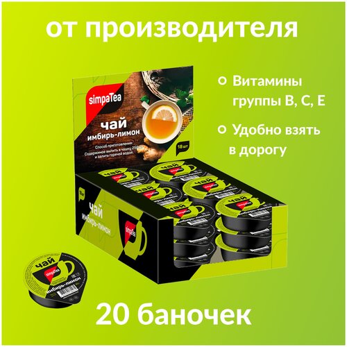 Набор порционного чая «SimpaTea» имбирь-лимон 20 баночек «дип-пот» по 45 г