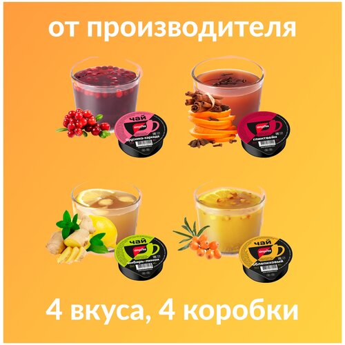 Набор порционного чая «SimpaTea» глинтвейн, имбирь-лимон, брусника-каркаде, облепиховый, 4 коробки по 36 баночек «дип-пот» по 45 г