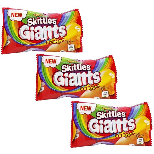 Жевательные Драже Скитлс Гигантские / Skittles Giants 45 г. 3 шт. (Ирландия)