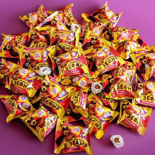 Зефир глазированный "Маша и Медведь" со вкусом банана и клубники, 2 кг