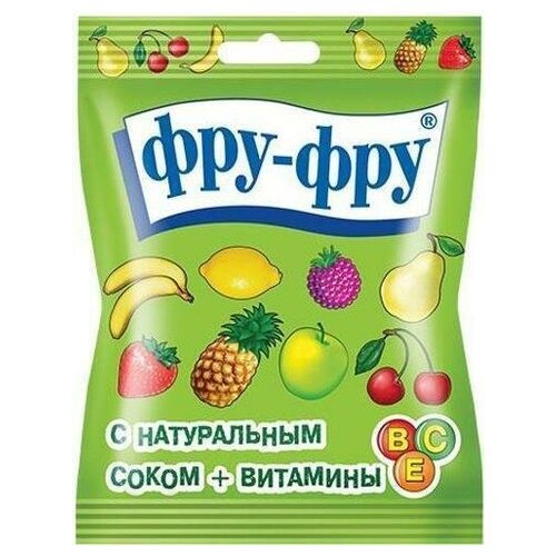 Жевательный мармелад Фру-Фру с натуральным соком, витамины, зеленый, 24 шт по 30 г
