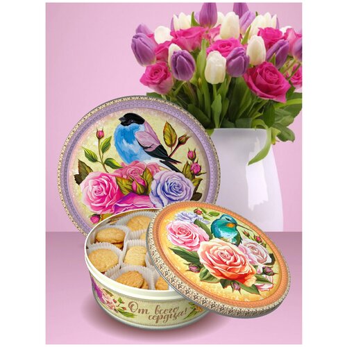 Печенье в подарок Тюльпаны сдобное со сливочным маслом в жестяной банке, Россия, 400 г