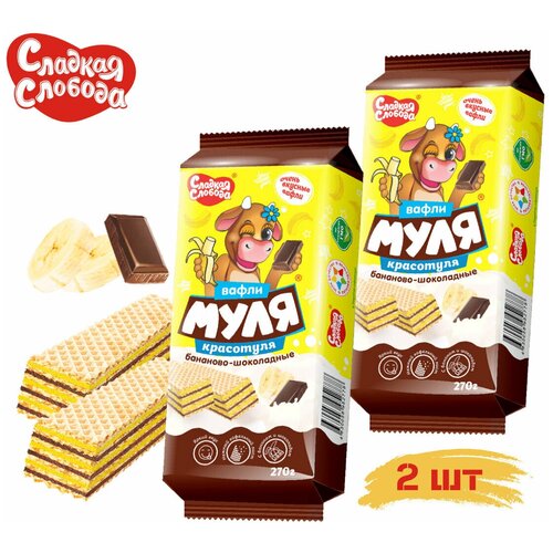 Вафли муля красотуля Бананово-шоколадные 540гр (2шт х 270 гр) /разрешено для питания детей с 3х лет /Сладкая слобода