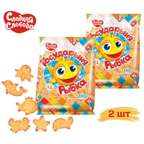 Печенье затяжное "Государыня рыбка" в форме морских фигурок, 560 г (2 шт. х 280 г) /Сладкая слобода