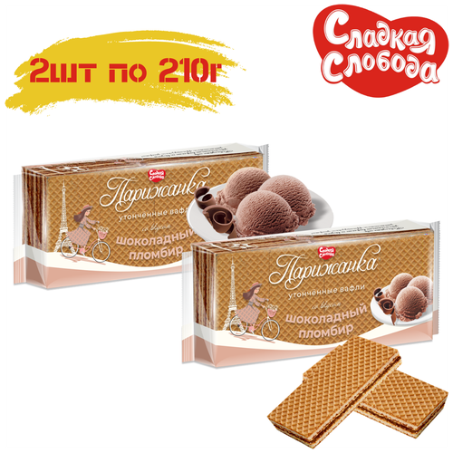 Вафли " парижанка " Шоколадный пломбир 2 штуки по 210 грамм / разрешено для питания детей с 3х лет / Сладкая слобода