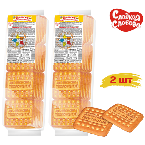 Печенье сахарное "Деревенское творожное", 2 шт по 325 г (разрешено для питания детей с 3-х лет) /Сладкая слобода
