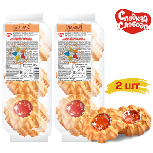 Печенье сдобное баба маня Курабье с персиковой начинкой 570гр (2шт х 285 гр) /разрешено для питания детей с 3х лет /Сладкая слобода