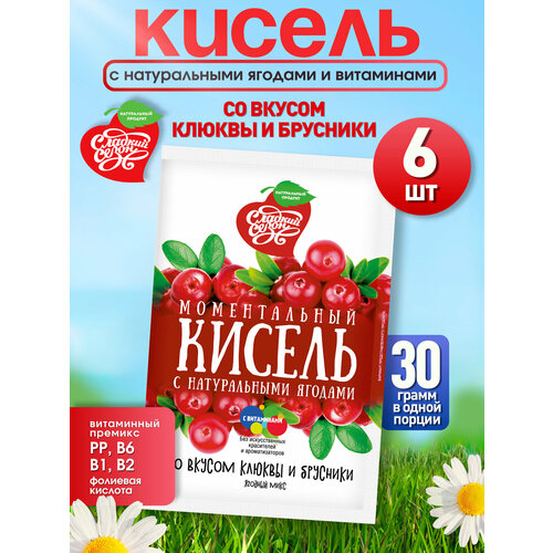 Кисель быстрорастворимый в пакетиках со вкусом брусники и клюквы. Сладкий сезон. 6 пакетиков по 30 гр. 270 грамм
