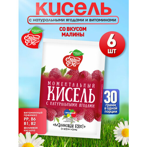 Кисель быстрорастворимый со вкусом малины в пакетиках. Сладкий сезон. 6 пакетиков по 30грамм.180 грамм.