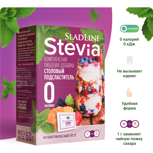 Сахарозаменитель SladLine Stevia, 0 калорий, 60 саше