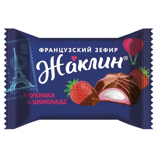 Конфеты славянка "Жаклин", французский зефир со вкусом клубники в шоколаде, 1000 г, пакет, 30588