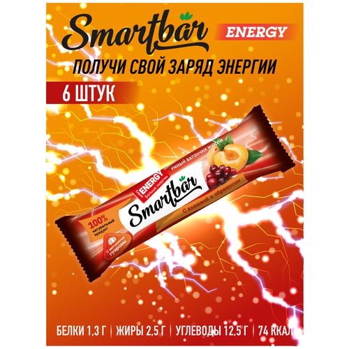 Батончик мюсли "С клюквой и абрикосом" с экстрактом гуараны SmartBar Energy 25г (6шт)
