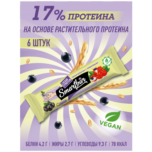Батончик Мюсли "Смородиновое мороженое" SmartBar Protein Vegan 30г (6шт)