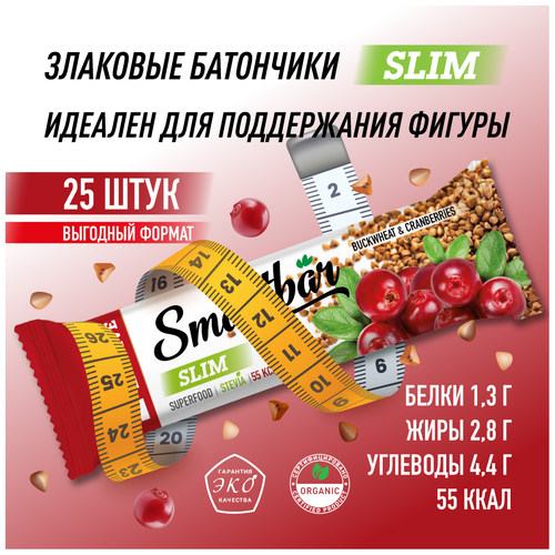 Батончик мюсли "С гречкой и клюквой" SmartBar Slim 25г (6шт)