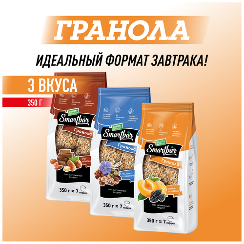 Гранола с цельными злаками, орехами и фруктами Ассорти SmartBar 3 шт. х 350 г.