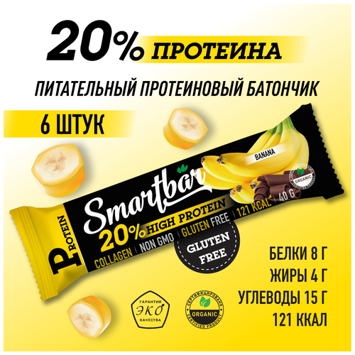 Протеиновый батончик SmartBar Protein 20% "Банан в темной глазури" 40г (6шт)