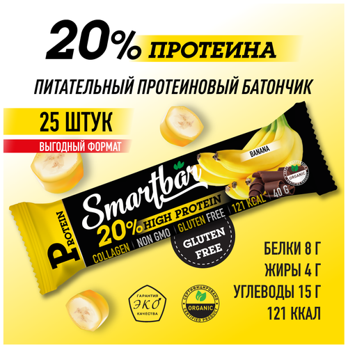 Протеиновый батончик Smartbar Protein 20% "Банан в темной глазури" 40г (25шт)