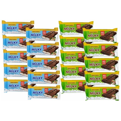 Молочный шоколад Snaq Fabriq Milky без сахара ассорти: с молочно-ореховой и шоколадно-ореховой пастой 55 гр (20 шт)