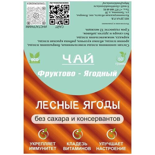 Фруктово-ягодный чай Лесные ягоды, органический, без консервантов, 50 г