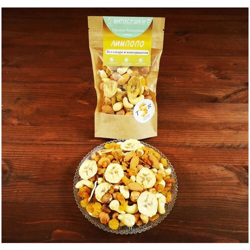 Смесь из орехов и сушеных бананов, натуральная, орехово-банановый микс "лимпопо", 80 г