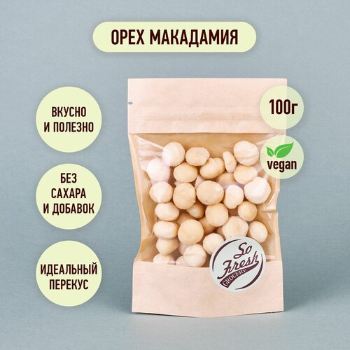 Орехи сырые/ орехи экзотические/ Орех макадамия сырой очищенный крупный сладкий из ЮАР So Fresh grocery, 100 г.