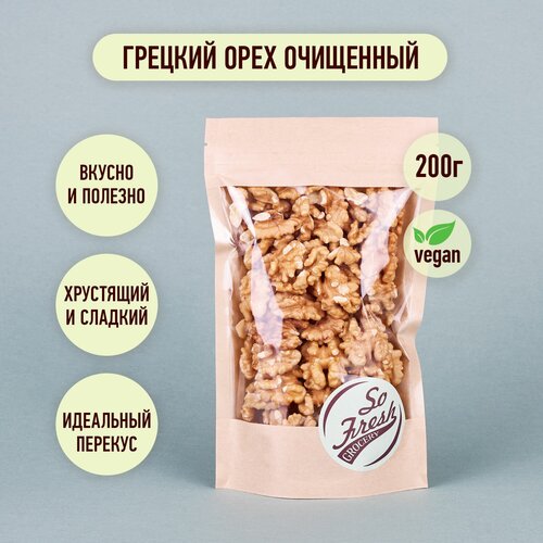 Орехи сырые/ Грецкий орех сырой очищенный крупный сладкий из Чили So Fresh grocery, 200 г.