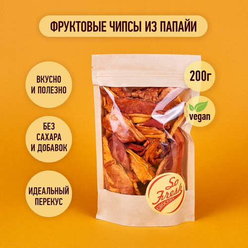 Фруктовые чипсы/ фрипсы/ сухофрукты So Fresh grocery папайя сушеная ломтиками без сахара, Шри-Ланка, 200 г.
