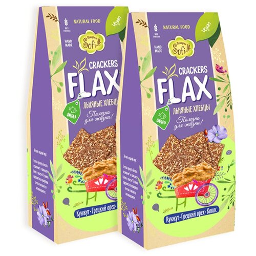 Хлебцы льняные. Кунжут, грецкий орех, кокос, 2 шт. х 130г в упаковке