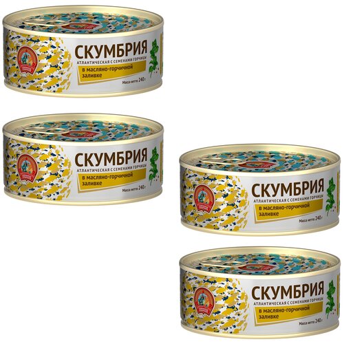 Скумбрия в масляно-горчичной заливке с семенами горчицы 240 г — 4 шт