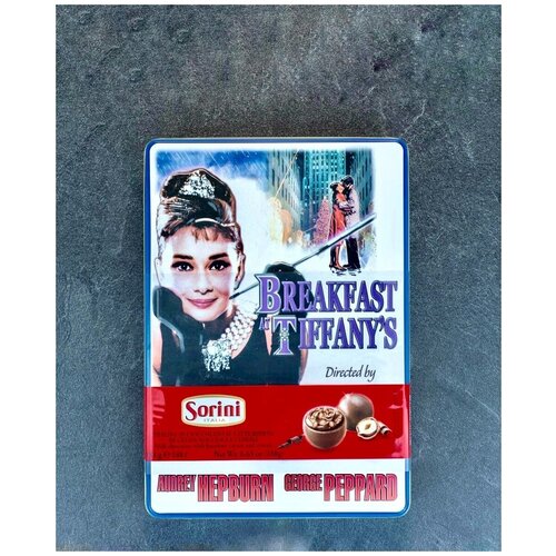 Шоколадные конфеты Sorini "Завтрак у Тиффани" с начинкой из крема-каппучино и злаков, 188 г (жестяная коробка), Италия
