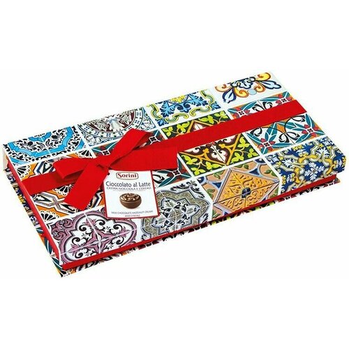Итальянские шоколадные конфеты SORINI Maja Maiolica из молочного и белого шоколада со злаками и начинкой пралине красный бант 270 г