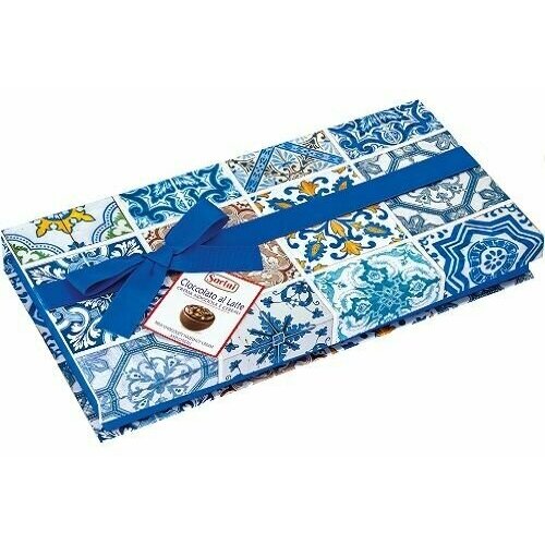 Итальянские шоколадные конфеты SORINI Maja Maiolica из молочного и белого шоколада со злаками и начинкой пралине синий бант 270 г