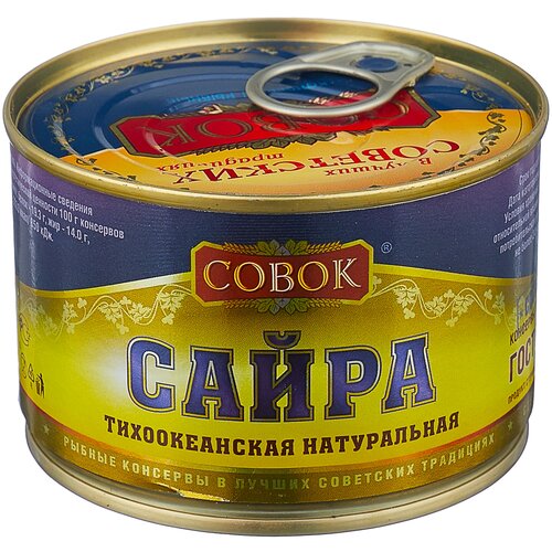 Сайра тихоокеанская натуральная Совок 250 гр, ж/б №6 с ключом