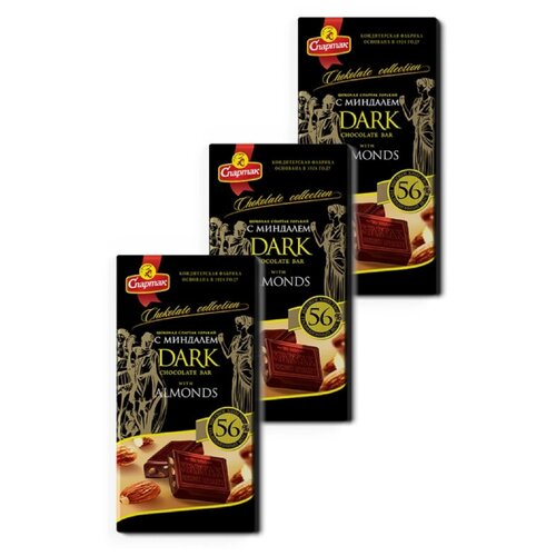 Шоколад горький с миндалем Спартак, 90 гр.* 3 шт.