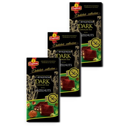 Шоколад горький с фундуком Спартак, 90 гр.* 3 шт.