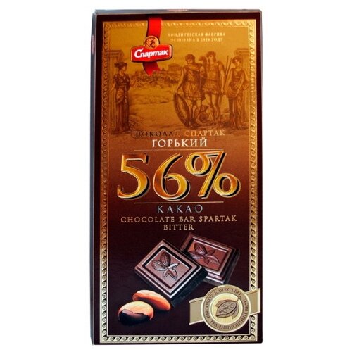 Шоколад горький — элитный 72% какао "спартак", 90 гр., крафт.