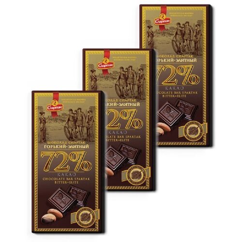 Шоколад горький элитный 72 % Спартак 3 шт по 85 гр
