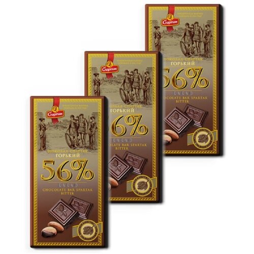 Шоколад горький 56% Спартак 3 шт по 85 гр