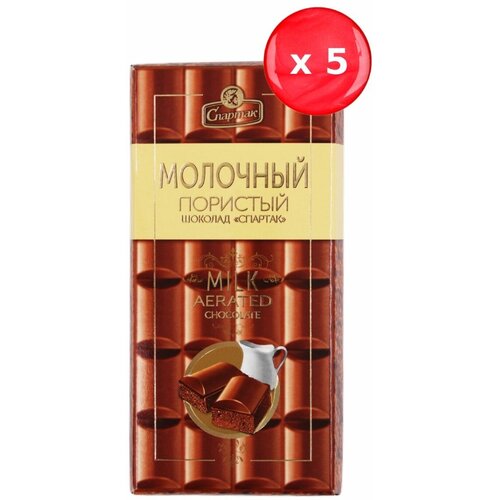 Шоколад Спартак молочный пористый 75 г, набор из 5 шт