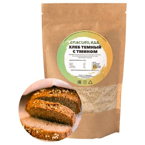 Миндальный хлеб тёмный бездрожжевой С тмином, миндальная и кокосовая мука с псиллиум, смесь для кето выпечки без глютена, сахара, лактозы и крахмала