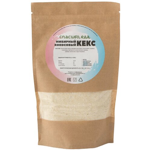 Имбирный кокосовый бездрожжевой низкоуглеводный кекс, смесь для кето выпечки без глютена, без сахара, без лактозы из миндальной и кокосовой муки 216г