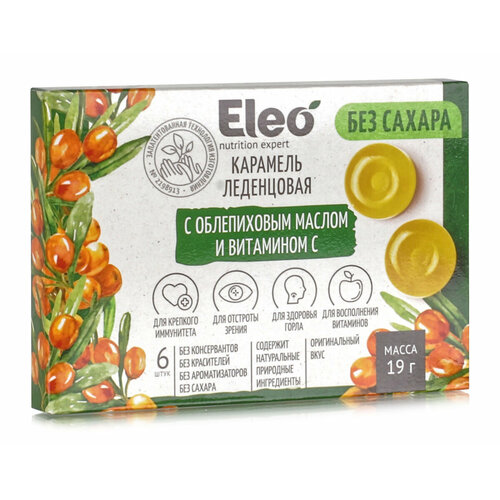 Карамель леденцовая / С облепиховым маслом и витамином С / без сахара 6штук / 19г.