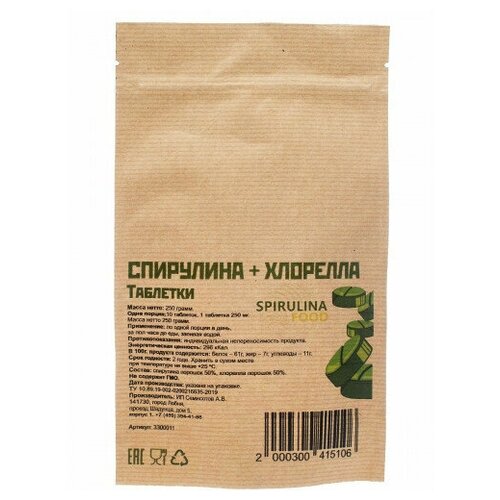 Спирулина + Хлорелла таблетки , для похудения , водоросли , 250 гр