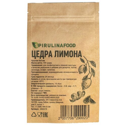 Цедра лимона кусочки , 5х5 мм , 100 гр