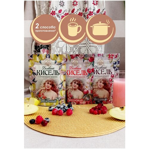 Кисель с натуральными фруктами — 3 шт. по 150 гр / Быстрорастворимый кисель Яблочный, Вишневый, Ягодный