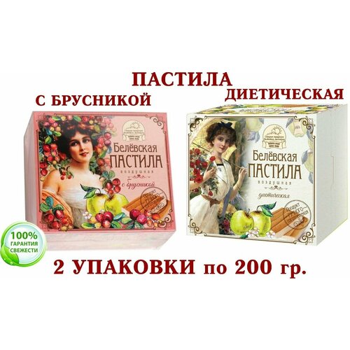 Пастила Белёвская воздушная микс с брусникой/Диетическая (Старые Традиции Белевских мастеров) 2 уп. * 200 гр.