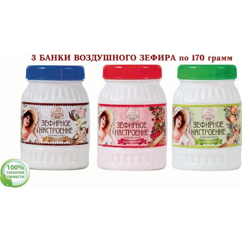 Зефир кремовый ассорти — "Зефирное настроение"- яблоко+ваниль+Клубника — " Старые традиции Белевских мастеров" — 3 банки по 170 грамм.