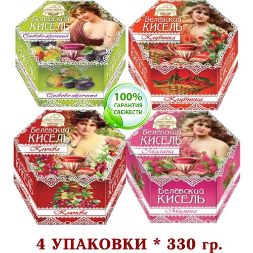 Белёвский кисель микс яблоко/СЛИВА-КЛУБНИКА-КЛЮКВА-МАЛИНА 4 уп. * 330 гр.