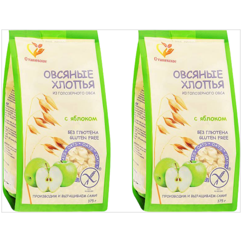 Хлопья овсяные безглютен. с яблоком, 375 гр (Сташевское Био) (2 шт. в наборе)
