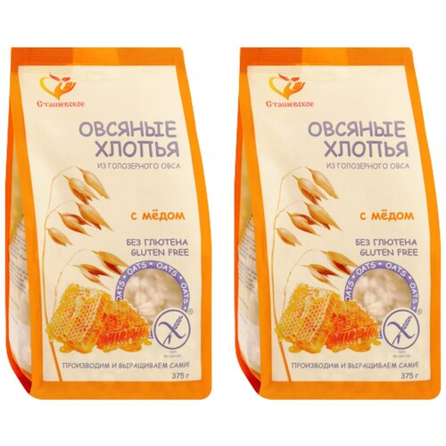 Хлопья овсяные безглютен. с медом, 375 гр (Сташевское Био) (2 шт. в наборе)